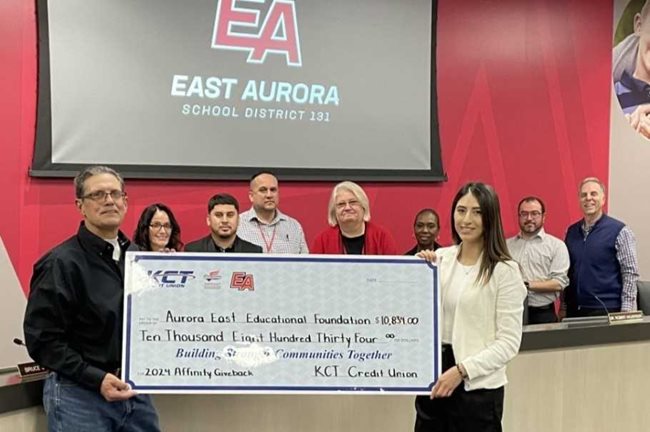 KCT Credit Union awards a $2,500 grant to the Aurora East Educational Foundation.